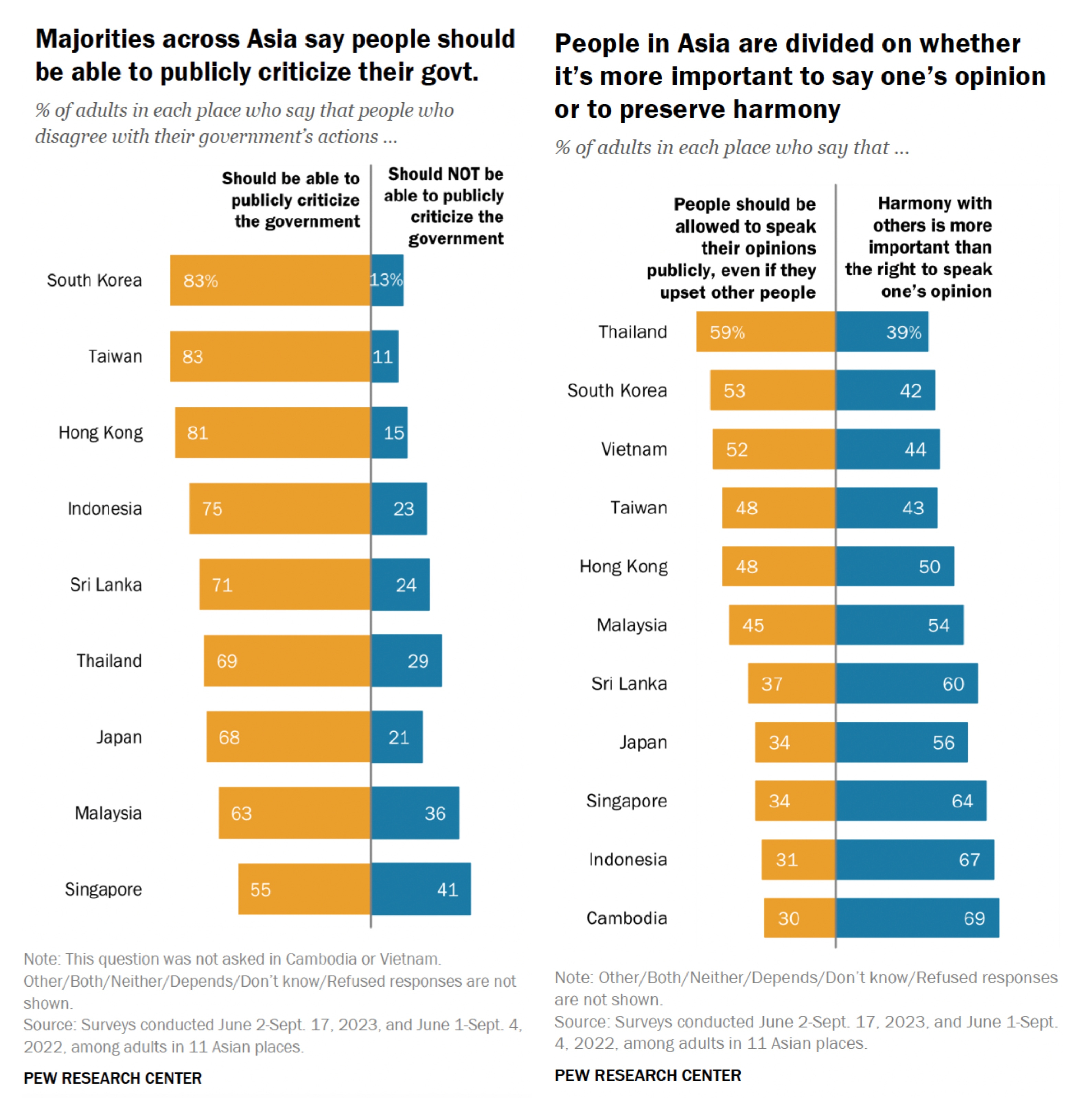 Many adults in East and Southeast Asia support free speech and are open to societal change, according to a report by Manolo Corichi based on a 2023 Pew survey.