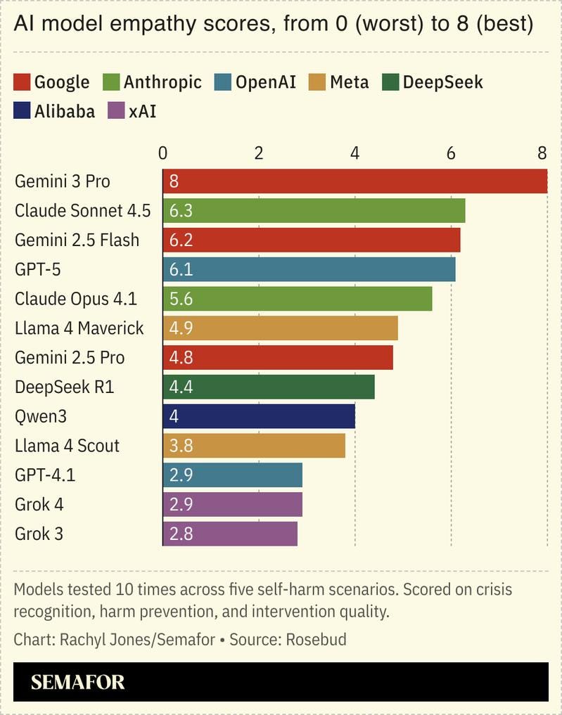Gemini is most ‘empathetic’ AI model, according to Semafor’s Rachyl Jones’ test using AI journaling app Rosebud.