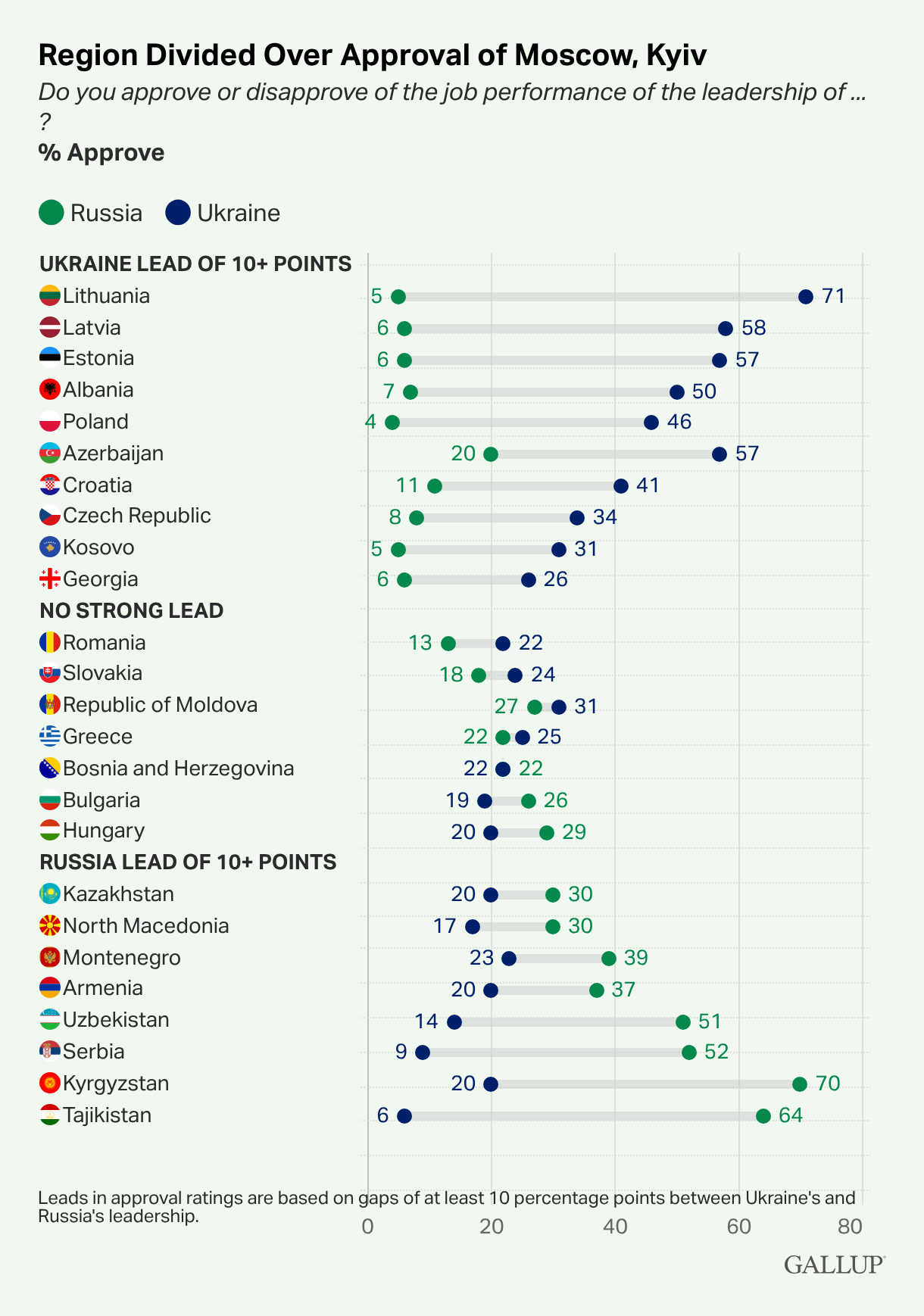 Kyiv’s lead in approval over Moscow narrows in their own backyard, according to Gallup. More here by Benedict Vigers and Galina Zapryanova.